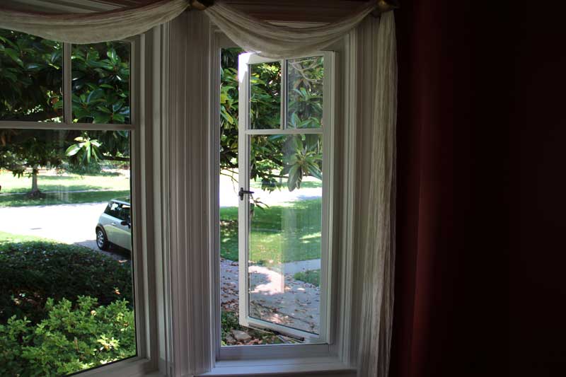 Secondly, the homeowners changed the old double hung windows to casements. Casement windows are windows hinged on the side. In this situation, the homeowners chose push-out casements instead of the typical crank style. To open, they simply turn the window handle and push out the sash – an easy and old fashioned way to enjoy pleasant temperatures and breezes. To top it off, the homeowners added the high transparency retractable screens. These screens retract out of sight when not in use.