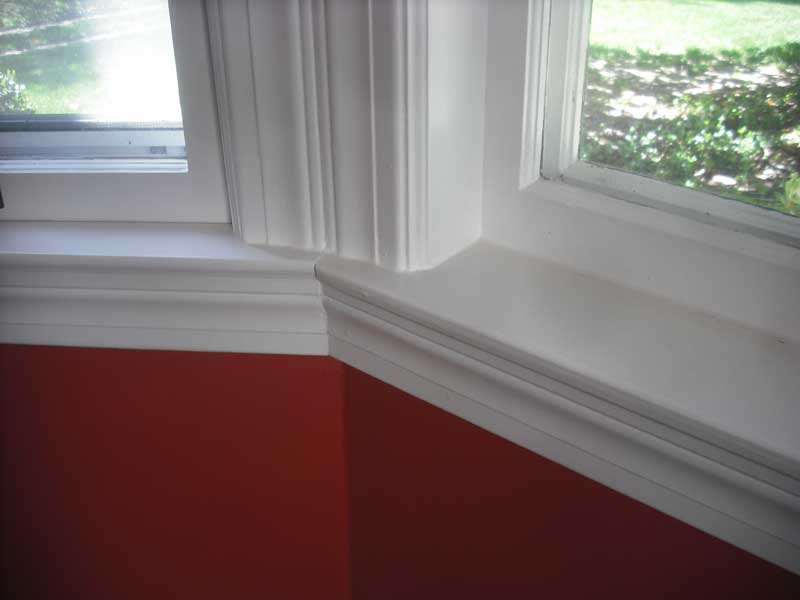 The original bay had a center picture window with a “4-over-4” light pattern, and was flanked by two double hung windows (raise/lower). Sometime during the life of this window, siding was added below the windows. Note that the roof on the bay is a typical shingle roof.
