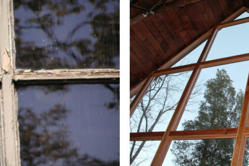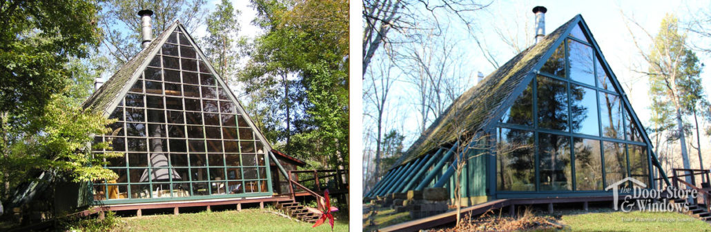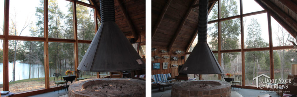 With such rich spectacles combined with a lakefront view, the cabin features a full wall of windows to enjoy nature’s showcase. As the cabin aged, the wall of windows suffered from decay resulting from the challenges of maintaining the hundreds of lineal feet of wood grids that framed the 90+ individual panes of glass in the wall of windows.