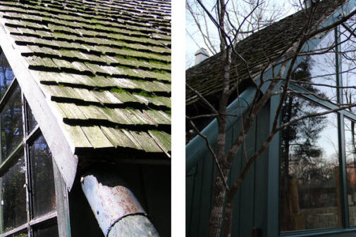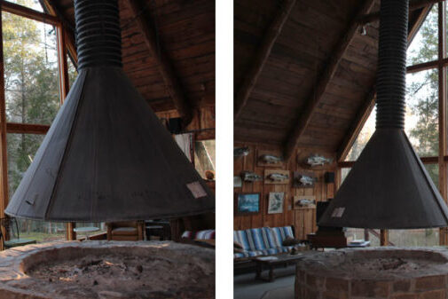 - Ellery and his crew removed the entire wall of windows and installed a new steel structural frame to handle the weight of the new, larger glass windows. This talented team of craftsmen worked with precision to align and square the steel frame to fit within the existing rough hewn tree trunks that comprised the main structure of the cabin.