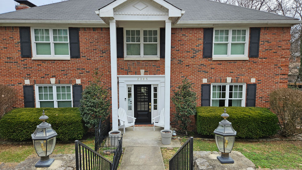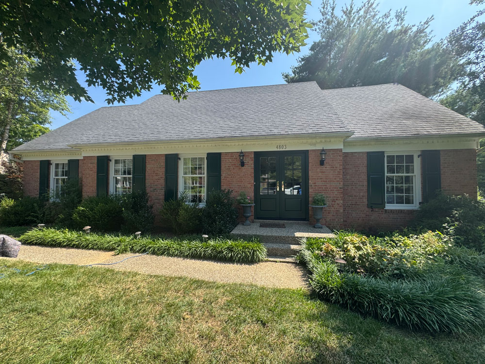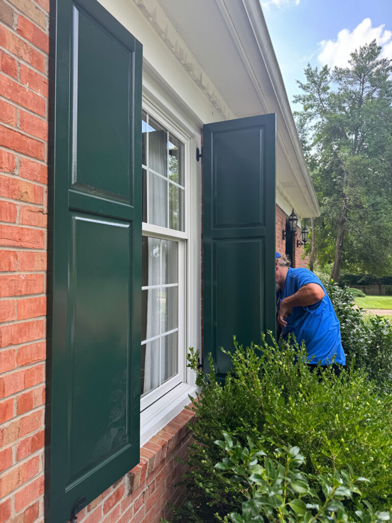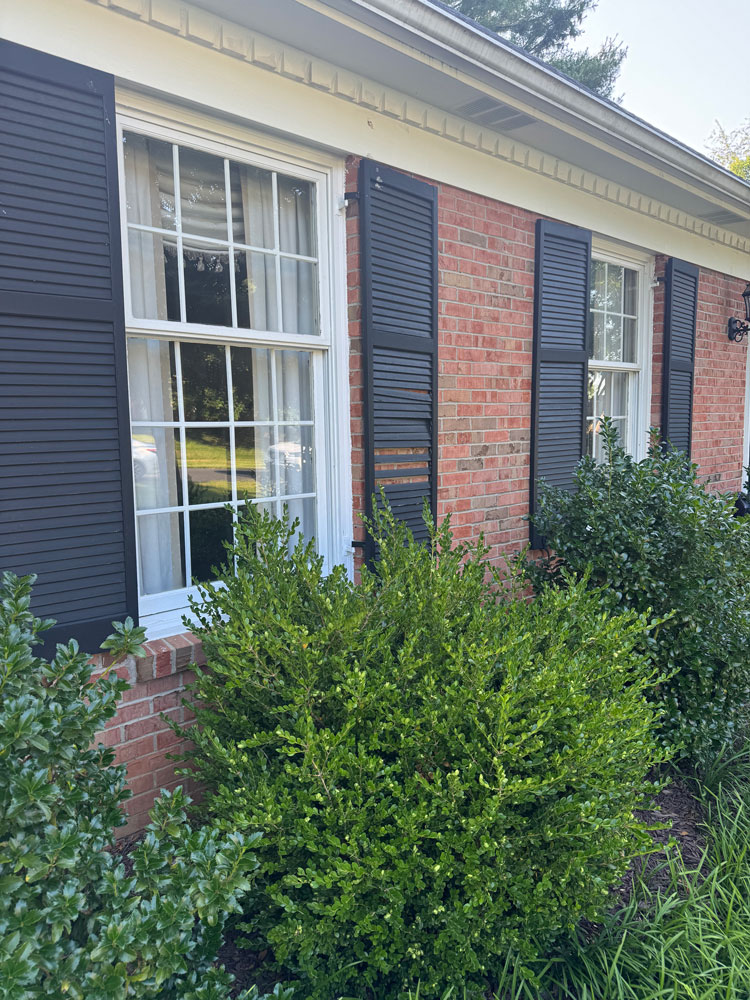 The new dark green adds softness, warmth, and depth, while beautifully complementing the brick. Instead of a stark contrast, the home now has a more refined, harmonious palette that feels both classic and updated.